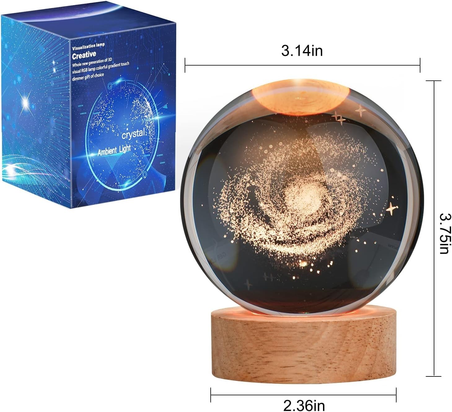 3D Galaxy Crystal Ball Night Lamp,Creative Engraved Crystal Ball Night Light, USB Table LED Wooden Crystal Ball for Home Office Decoration Birthday Gift Adults (Galaxy)(Warm White)